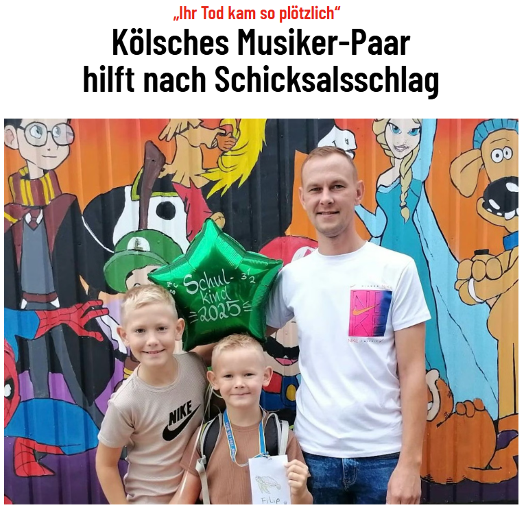 Wir haben diese Pulheimer Familie kennen gelernt und waren sehr bewegt von ihrem Schicksal. Viel zu früh verlieren hier zwei Kinder im Alter von 6 und 8 Jahren ihre Mama und Michael seine geliebte Frau. Ein plötzlicher Schlaganfall reist die junge Mama mitten aus dem Leben. Michael funktioniert. Er versucht den Alltag so gut es geht alleine mit seinen Kindern zu meistern und vor allem für seine Kinder. Im Gespräch mit ihm, hat er viel geweint und immer wieder gesagt…..ich möchte eigentlich gar kein Geld – ich möchte nur die Mama für meine Kinder zurück….